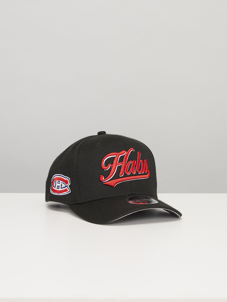 Black Canadiens cap with a slightly rounded visor and the team nickname, the “Habs” embroidered on the front. The team logo and the New Era logo are embroidered on each sides. It also features snapback adjustment in the back for the perfect fit!
