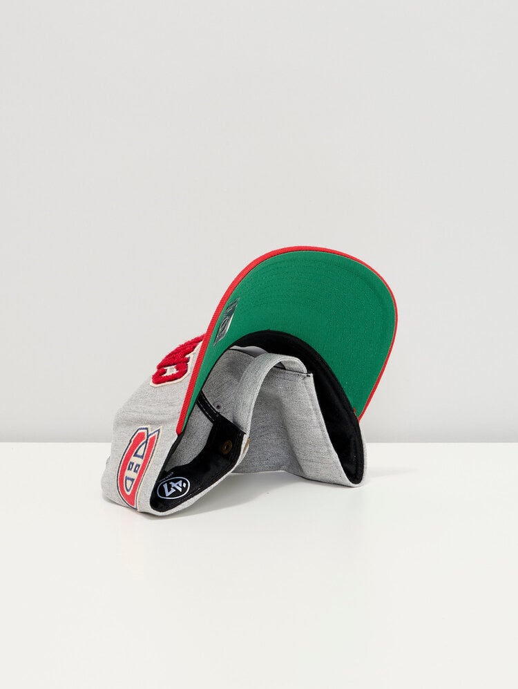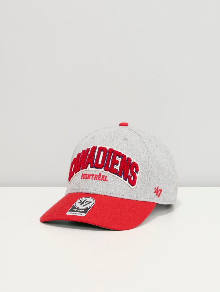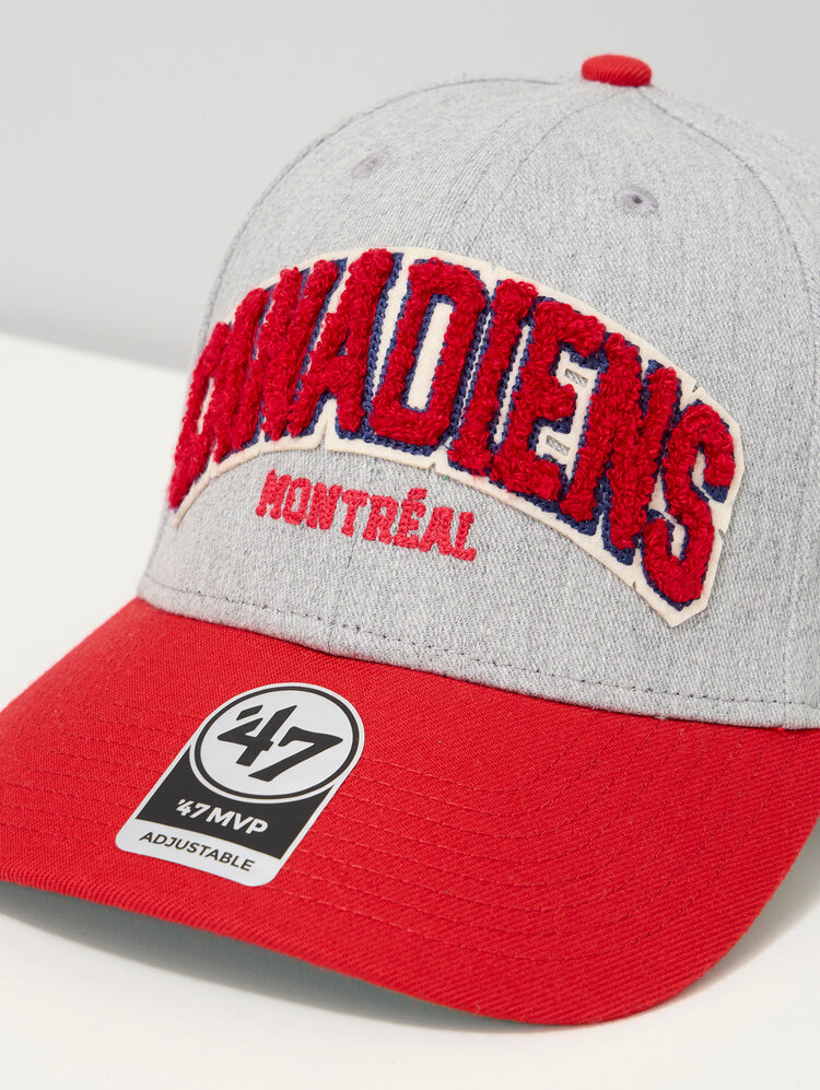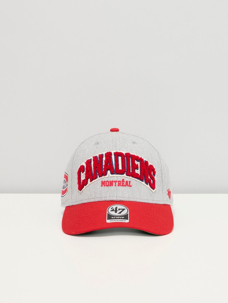 Sport a bold and classic look with the Montreal Canadiens Grey & Red MVP Adjustable Cap. Featuring a heather twill crown and a wool blend visor, this cap combines comfort with timeless style. Its structured shape ensures a clean silhouette, while the adjustable self-fabric strap with buckle offers a secure and personalized fit. The front showcases a standout chenille and felt appliqué of “Montréal Canadiens,” and the side is finished with a flat embroidered team logo—making this cap a must-have for fans who appreciate quality and detail.