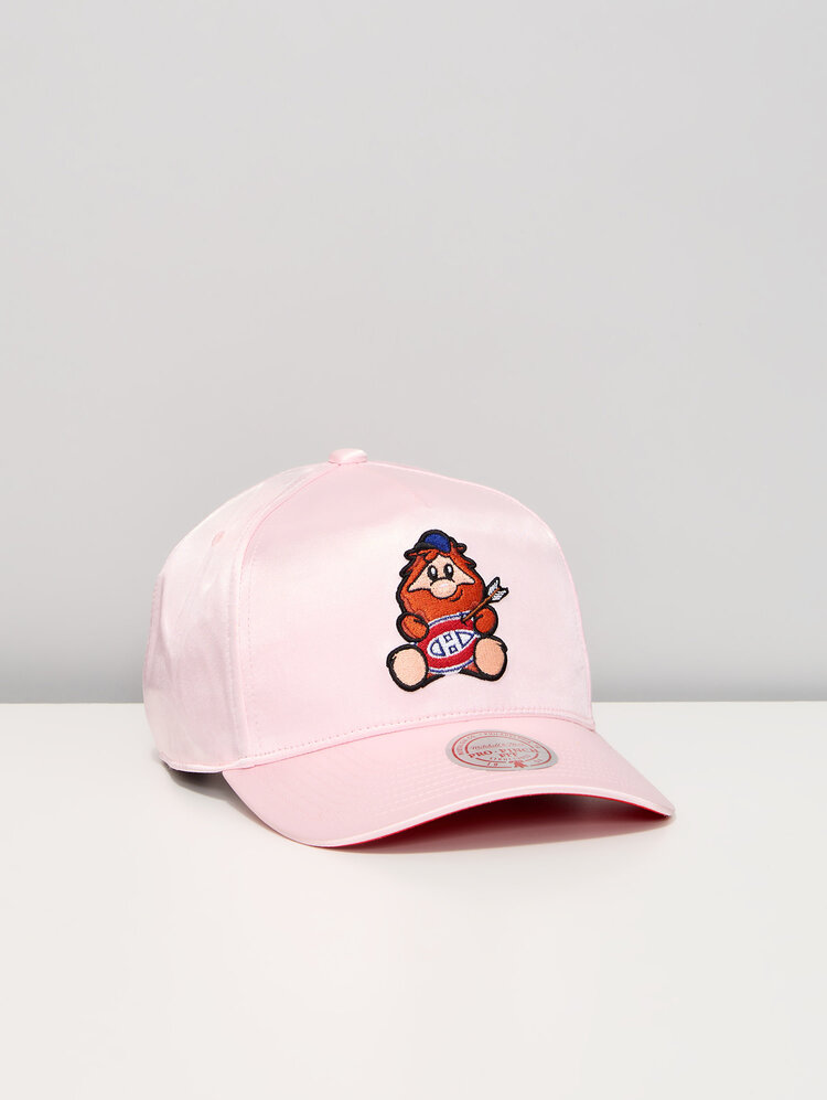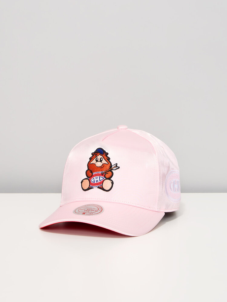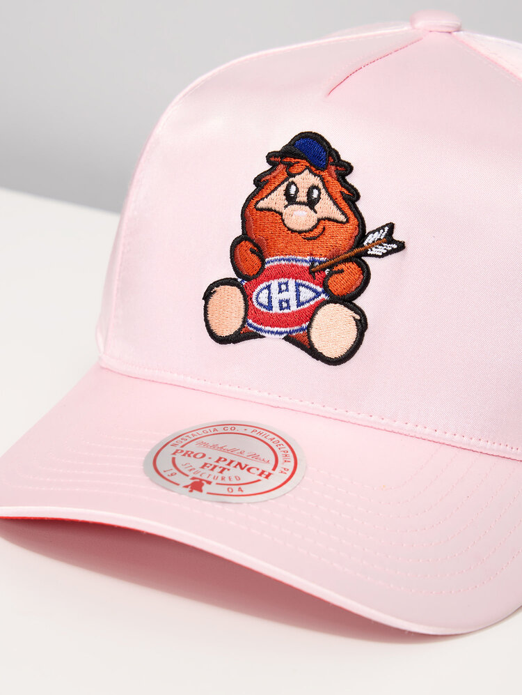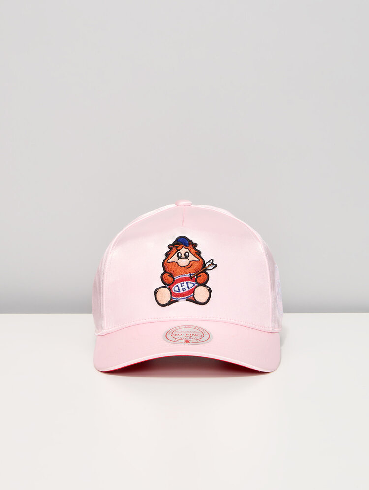 Show off your playful side as a Canadiens fan with the Montréal Canadiens Youppi! Satin A‑Frame Cap. This standout cap features a smooth satin finish and a structured A‑frame design, highlighted by an embroidered Youppi! mascot graphic front and center. The light pink crown and contrasting brim stitching give this cap a unique, fashion‑forward look while still celebrating the iconic spirit of the Montréal Canadiens. Designed for comfort and everyday wear, this cap is perfect for game days, street style outfits, or fans looking to add a fun and stylish twist to their NHL headwear collection.