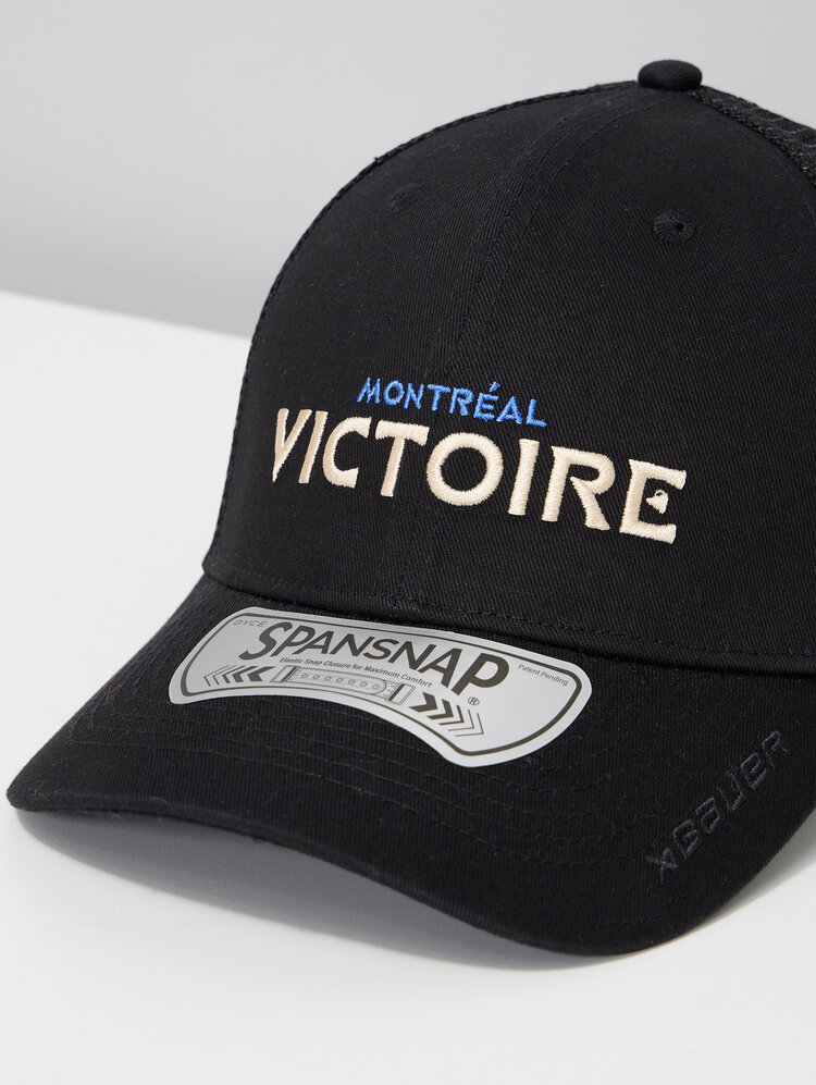 Show off your team pride in style with the Montreal Victoire Adult Bauer Adjustable Trucker Hat. Whether you're celebrating a game-winning goal or cheering from the stands, this hat offers the perfect fit with a SPANSNAP® stretch closure that provides both comfort and support. Featuring soft mesh sides and back for breathability, it keeps you cool no matter how intense the game gets. Wear your fandom with confidence, knowing this hat will stay securely in place through every cheer and celebration!