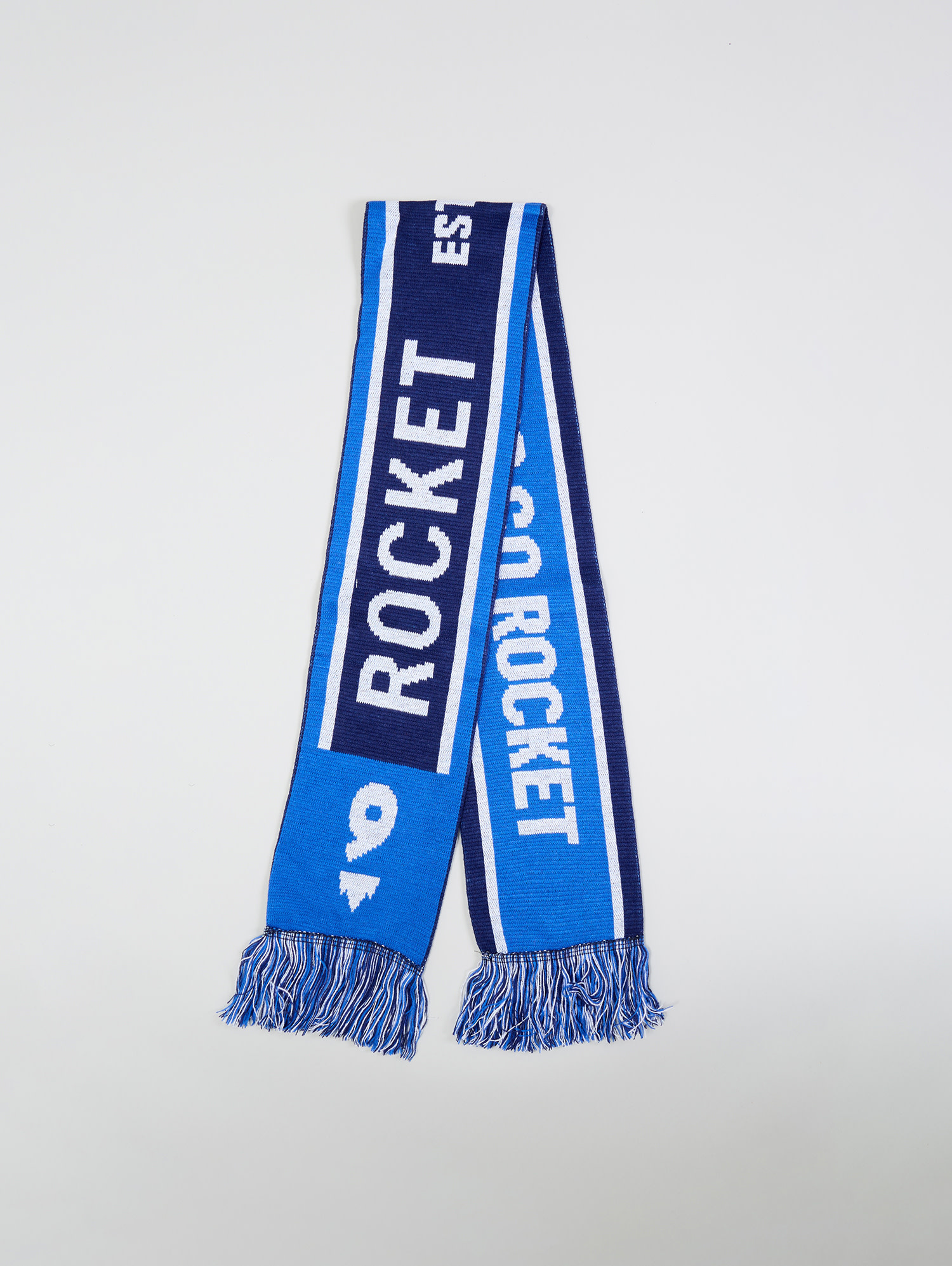 - “Let’s Go Rocket” woven design for bold fan expression