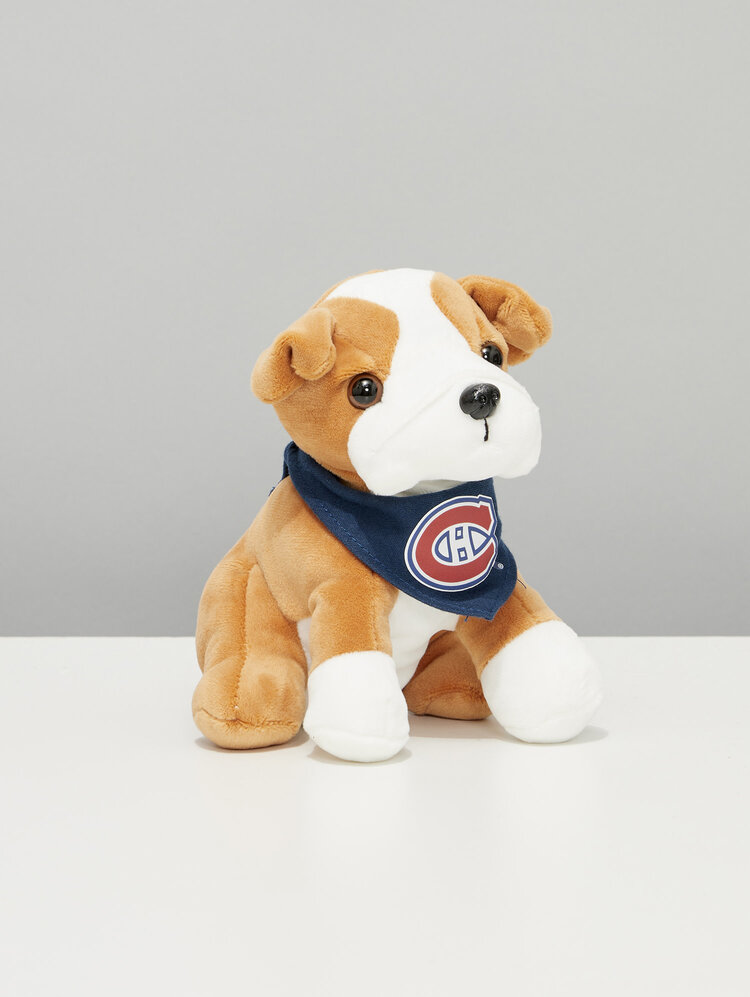 The Montreal Canadiens Bulldog Plush is a delightful stuffed toy that is sure to bring joy to any young fan of the legendary hockey team. The plush is made from soft, plush fabric that feels incredibly cozy to the touch. Its exterior is a beautiful shade of bright red, the signature color of the Canadiens, and it has white accents to represent the team's distinctive logo. The bulldog's facial features are skillfully embroidered with care, giving it an adorable and friendly expression that will melt your heart.