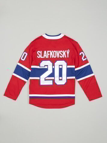 This is the authentic Montreal Canadiens player t-shirt with the name Juraj Slafkovsky #20 printed on the back of the t-shirt. A great way to show support for your favorite player!