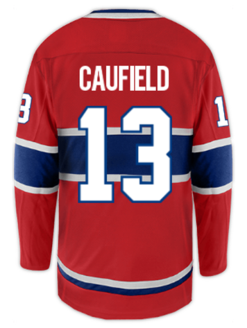 Crafted from breathable, durable polyester, this jersey ensures all-day comfort, whether you’re cheering in the stands or showing your team pride around town. The front of the jersey showcases the iconic Canadiens crest, boldly embroidered at the center of the chest, while the sleeves and shoulders feature detailed striping in the team’s classic colors. The back proudly displays Caufield's name and number (#13) in large, tackle-twill lettering, giving you the look of an authentic player jersey.