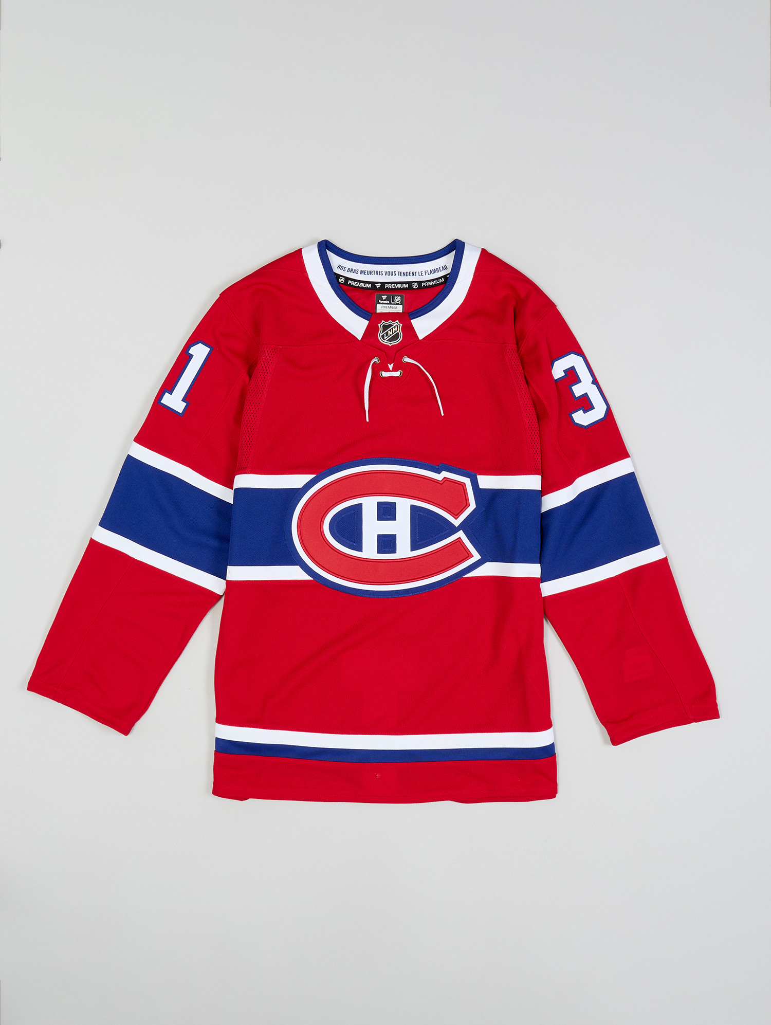 The Montreal Canadiens Personalized #31 Carey Price Premium Home Jersey is a must-have for true fans, offering a high-quality design inspired by the on-ice jerseys worn by the team. Crafted from 100% polyester, this jersey provides a lighter, more breathable fit while maintaining the look and feel of the Authentic Pro version. Its premium construction ensures comfort during long wear, making it perfect for cheering on the Habs in style.