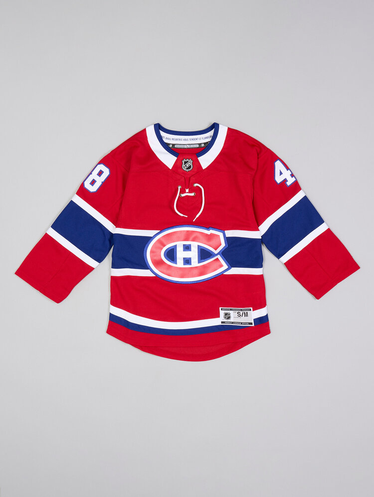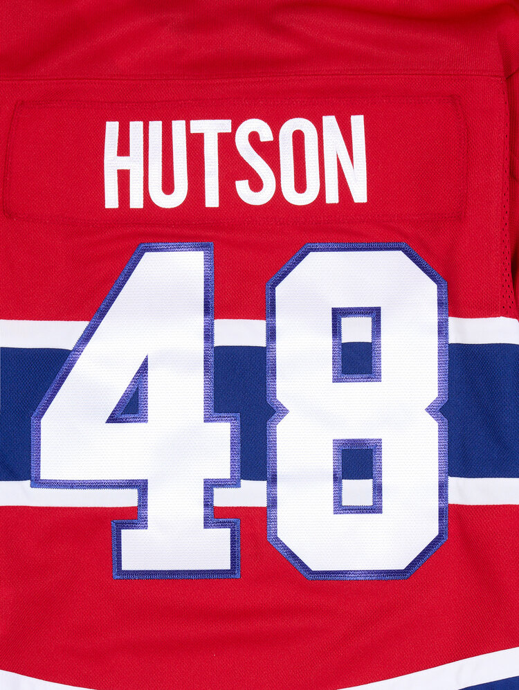 This is the official youth Montreal Canadiens jersey with the name Hutson and his #48 heat sealed on the jersey.