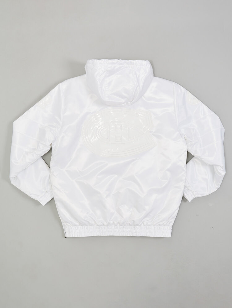 Introducing the All White Montreal Canadiens Jacket – a sleek and modern tribute to your love for the team. This jacket takes team pride to a new level with its striking all-whitedesign, showcasing the iconic Canadiens logo in a bold and understated way. Crafted with attention to detail and comfort in mind, it's the perfect outer layer for fans who want to make a statement.