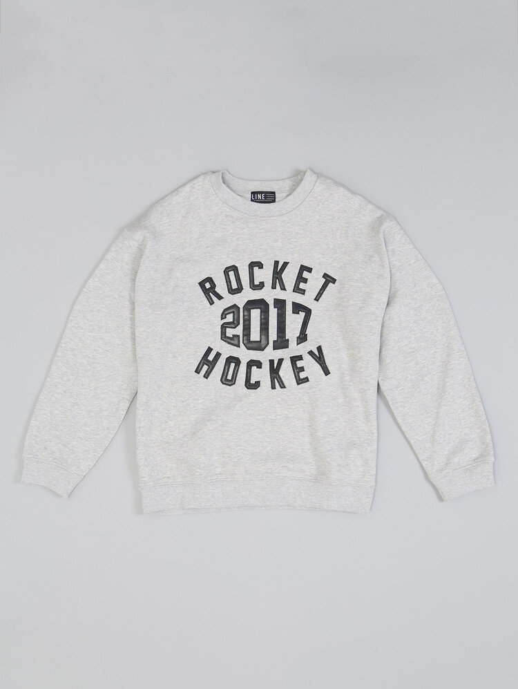 Embrace classic hockey heritage with Line Change’s Nostalgic crewneck. Featuring bold faux leather lettering and a relaxed fit, this cozy sweatshirt is perfect for sports enthusiasts and casual wear alike. Made for comfort and timeless appeal, it's a nod to the storied legacy of the Laval Rocket.
