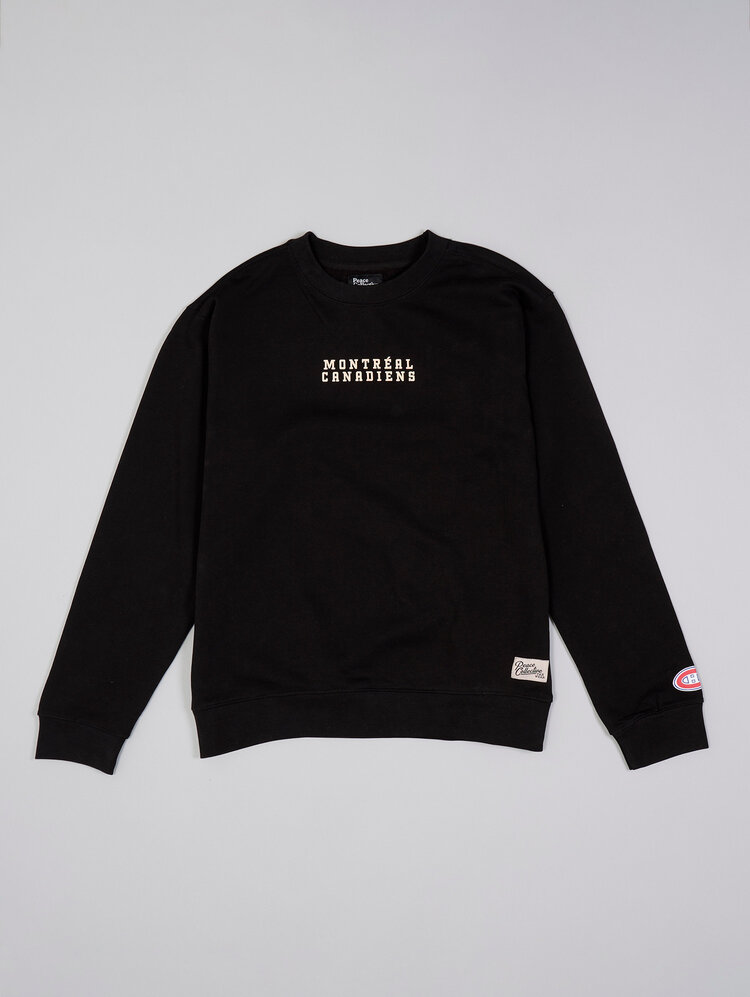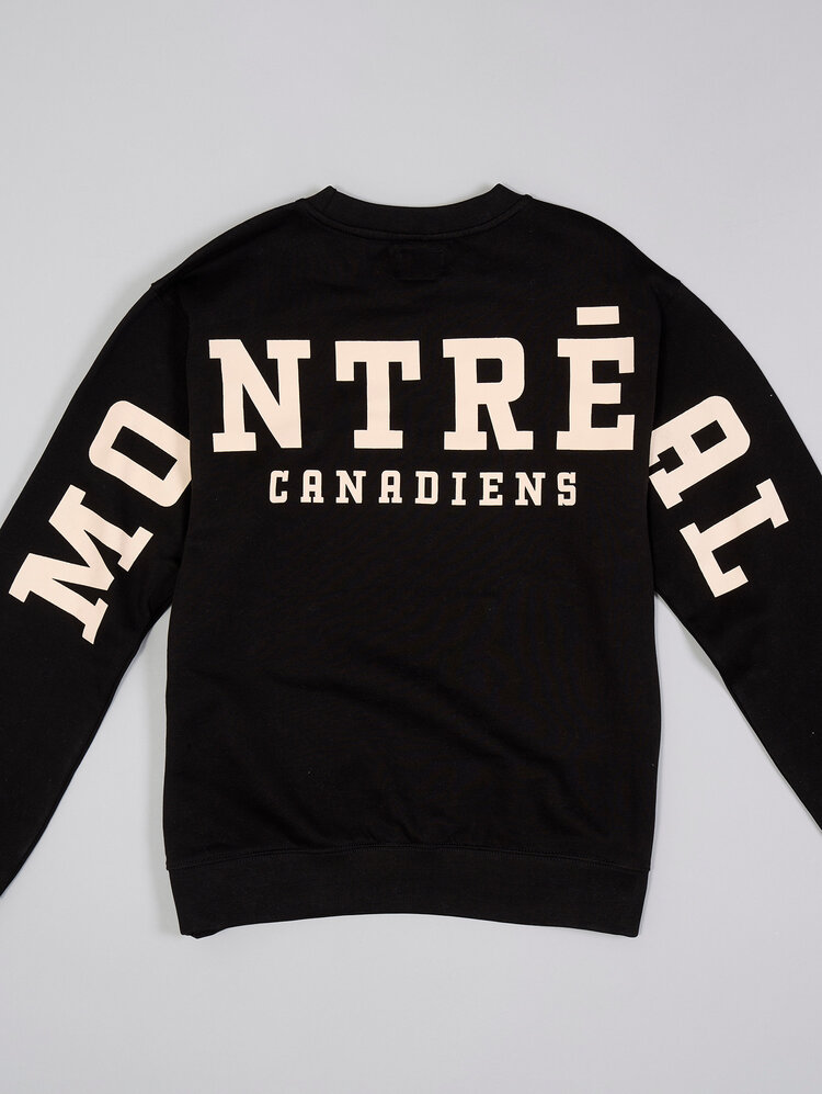 Show your Habs pride in bold, modern style with the Montréal Canadiens Spirit Crewneck – Black by Peace Collective. This officially licensed NHL piece features detailed graphics on the front and sleeves, giving it a distinctive streetwear edge. Constructed from a soft 60% cotton, 40% polyester ringspun fleece, it's designed for comfort and durability. Ribbed at the collar, cuffs, and hem for a snug fit, and preshrunk to minimize shrinkage, this crewneck blends everyday wearability with passionate fan energy.