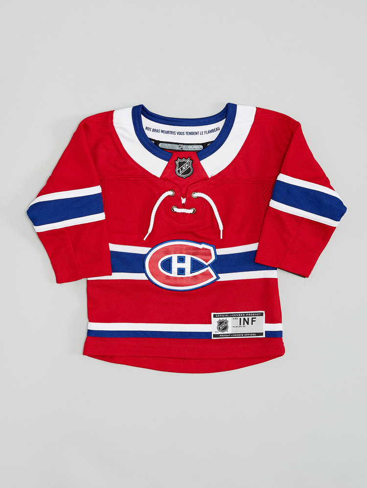 This is the official Montreal Canadiens jersey made for babies between the ages of 0 and 2 years old.