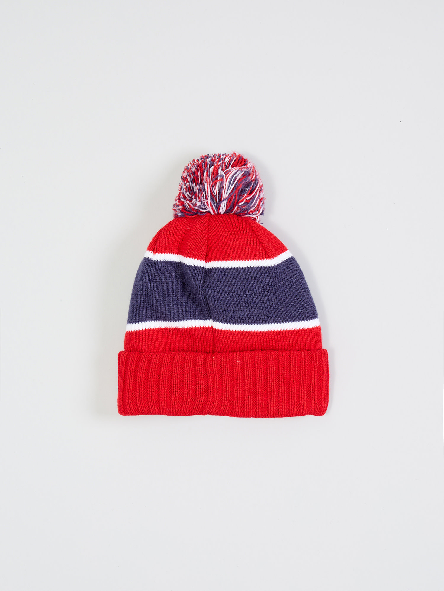 Designed in iconic Canadiens blue, white and red, this cozy baby knit features bold horizontal striping, a soft pom‑pom on top, and a comfortable folded cuff for warmth. The embroidered Montreal Canadiens “CH” logo on the front proudly showcases team pride, while the snug knit fit helps keep little heads warm during chilly outings.