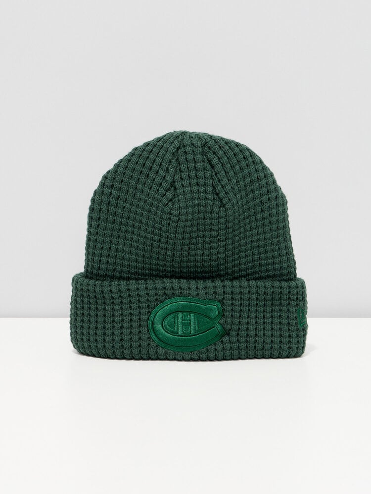 Keep warm while repping your team in style with the Montreal Canadiens Forest Green Waffle Embroidered Beanie. Featuring a textured waffle-knit design and a classic cuffed silhouette, this beanie delivers both comfort and timeless fan appeal. The embroidered Canadiens logo stands out on the front, while the subtle New Era branding adds a premium touch. The rich forest green color offers a fresh, earthy twist to your winter wardrobe, making it perfect for game days or everyday wear. Soft, snug, and stylish—this beanie is a must-have for any Canadiens supporter.