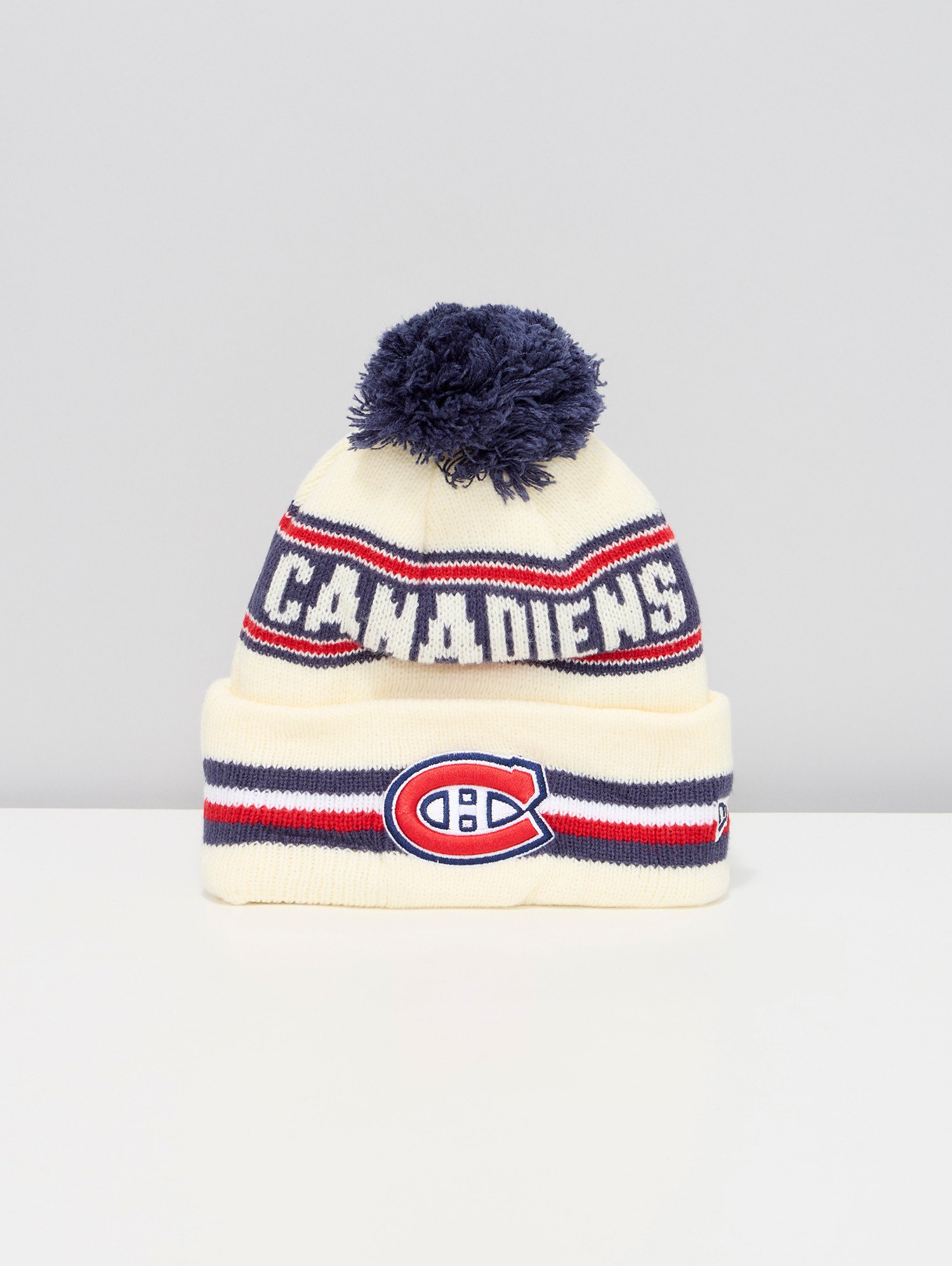 Celebrate timeless Canadiens style with the Montreal Canadiens Classic Retro Pom Knit Tuque. This vintage-inspired winter hat features an embroidered Habs logo on the front cuff and a bold CANADIENS wordmark across the crown. Designed with classic team colors and a removable pom for versatile wear, this tuque combines heritage aesthetics with modern functionality. Perfect for game days, outdoor activities, or everyday winter comfort.