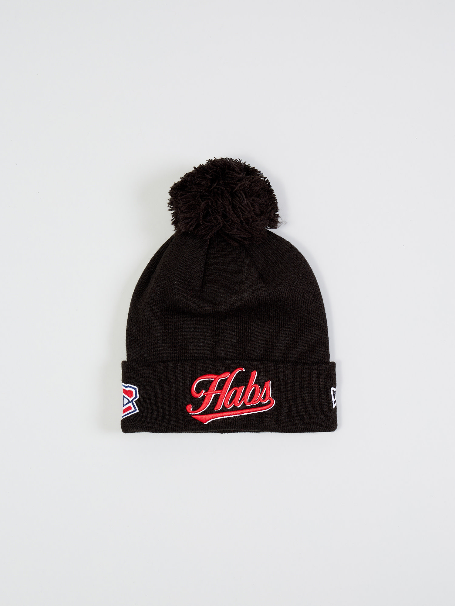 Crafted from a soft, warm knit, this tuque features a black base highlighted by a striking red italic “Habs” embroidered wordmark on the front cuff. A black pom‑pom on top adds a traditional winter finish, while the fold‑over cuff provides a snug, comfortable fit. Finished with authentic Canadiens detailing, this tuque is built for fans who want a clean yet confident look.