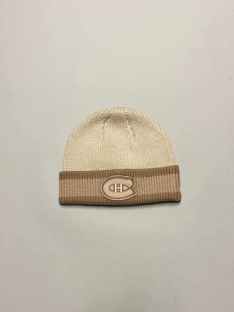 Featuring a ribbed cuff and a tonal Canadiens logo patch, this limited‑edition beanie brings a refined twist to classic fan gear. Its neutral cream palette ensures easy styling—perfect for layering during cold Montréal winters or completing a modern, everyday outfit.