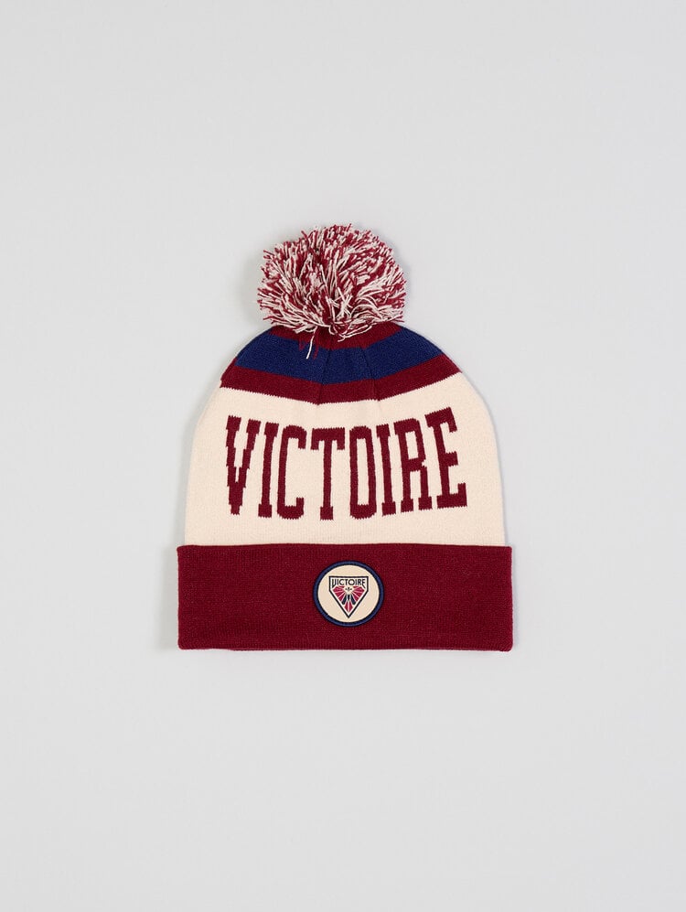 - Classic pom detail for a timeless winter style