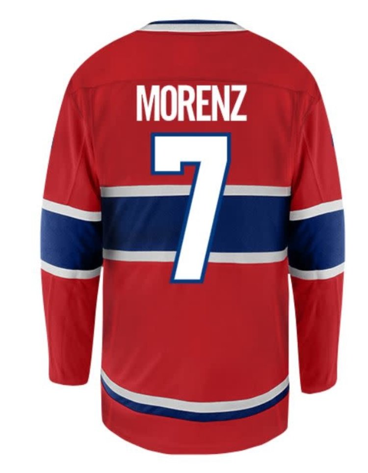 The heat-sealed NHL Shield at the collar and embroidered fabric appliqués ensure premium detailing throughout. Whether you're reliving Morenz’s explosive plays or adding a legend to your collection, this jersey is a must-have for any Habs fan.