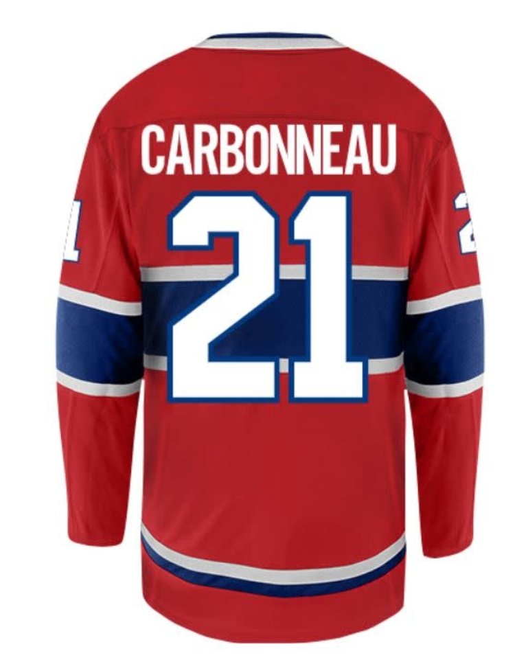 The heat-sealed NHL Shield at the collar and embroidered fabric appliqués ensure premium detailing throughout. Whether you're reliving Carb's intelligent plays or adding a legend to your collection, this jersey is a must-have for any Habs fan.