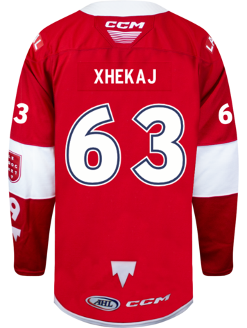 The bold red color, accented with the Rocket’s signature blue and white details, makes a striking statement, while the authentic team crest on the front showcases your pride for Laval’s AHL franchise. Whether you're cheering from the stands or representing your favorite team on the go, this David Reinbacher Laval Rocket jersey is a must-have for any dedicated fan.