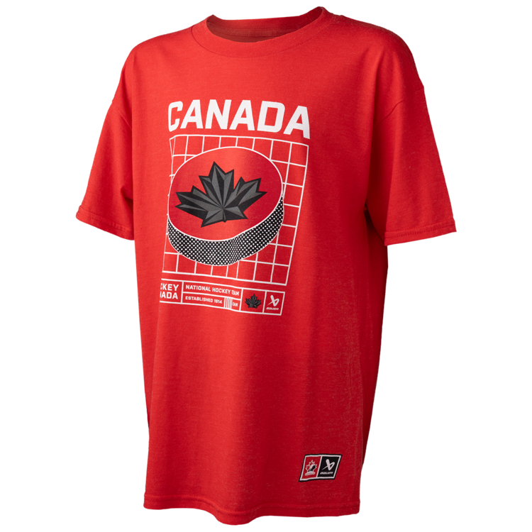 Show off your love for hockey with the Hockey Canada Youth Puck Tee, designed for young fans who want comfort and style. Featuring a bold graphic and premium fabric blend, this tee is perfect for everyday wear or cheering on Team Canada.
