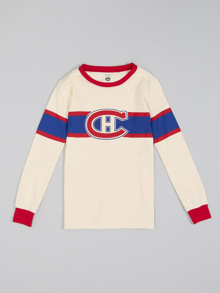 Celebrate hockey history with the Montreal Canadiens Classic 1945-1946 Jersey Two-Piece Kids Pyjama set! Inspired by the iconic jersey from the Canadiens' legendary season, this pyjama set is made from 100% organic cotton with a durable and cozy 200 GSM fabric weight. The set includes a long-sleeve top and matching pants, featuring authentic team colors and design details for a true vintage look. Soft, breathable, and perfect for young fans, this pyjama set combines comfort with a touch of nostalgia, making it ideal for bedtime or game nights. A timeless tribute for the next generation of Habs enthusiasts!
